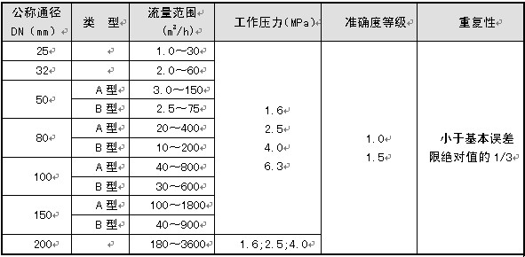 2.1流量計(jì)規(guī)格、基本參數(shù)和性能指標(biāo)(見表1)