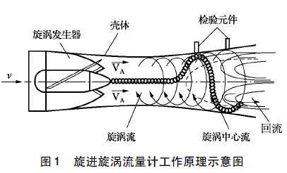 當流體通過螺旋形的旋渦發(fā)生體后,流體被迫繞旋渦發(fā)生體中心劇烈地旋轉,形成旋渦流。旋渦流加速,沿流動方向經縮段、流動強度增強。當旋渦流進入擴散段后,在導流體回流的作用下,該旋渦產生二次旋轉,二次旋渦的頻率與流量與正比。當流量計設計得當時,在很寬的流量范圍內,旋渦頻率與流量成線性關系。該頻率由壓電傳感器檢測,通過流量積算儀進行運算和處理。顯示流量的瞬間流量和累積總量,并變送輸出對應的4-20mA電流信號。