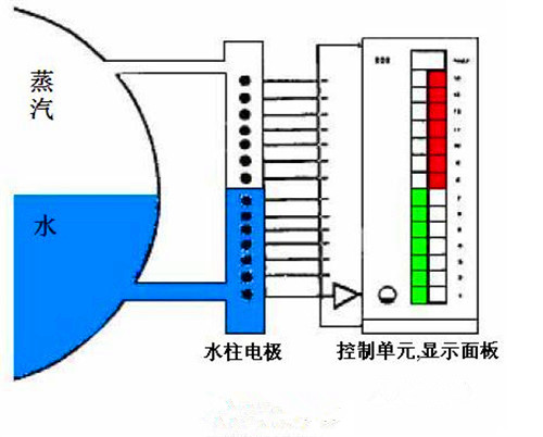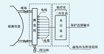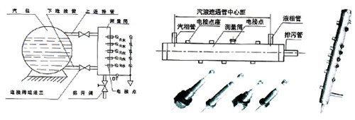 電接點(diǎn)液位計(jì)示意圖: